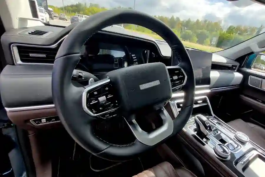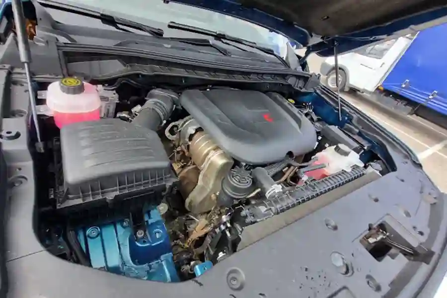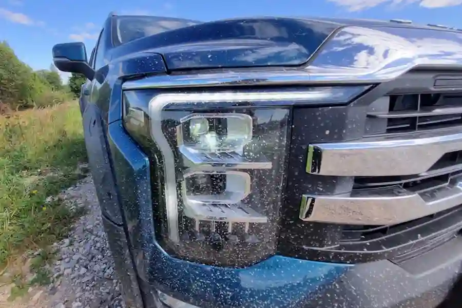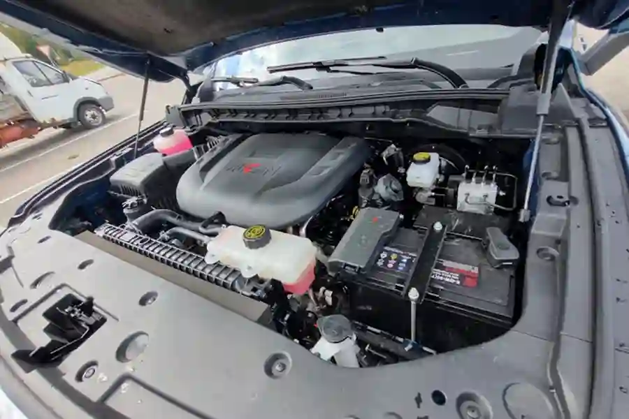 Внешне автомобиль очень похож на своих американских собратьев. Китайские дизайнеры явно вдохновлялись американским Ford F-150, особенно это заметно в передней части автомобиля. Однако, в техническом плане машины совсем разные. Для этого достаточно заглянуть под капот. Там конечно же нет никакого бензинового пожирателя топлива в конфигурации V8, в моторном отсеке стоит скромный турбодизель объемом 2 литра, развивающий 159 л.с. при 410 Нм крутящего момента. Но дизель работает в паре с 48 вольтовой гибридной системой, которая прибавляет еще 60 Нм.