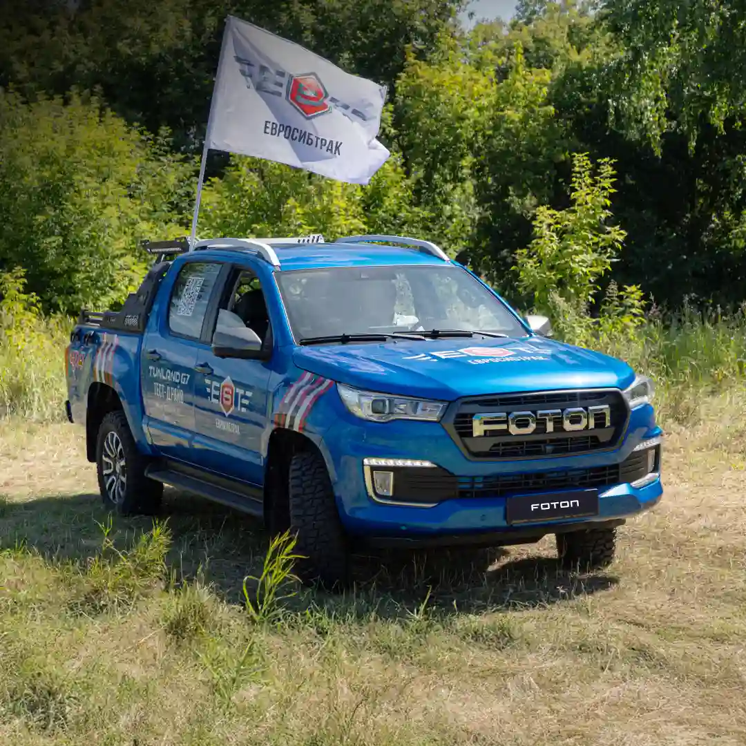 На стенде дилера «Евросибтрак» также был представлен флагманский FOTON TUNLAND V9 — уникальный для российского рынка полноразмерный пикап с панорамной крышей. Автомобиль сочетает комфорт и функциональность большого 5-местного внедорожника с грузоподъёмностью до 675 кг. Турбодизельный двигатель объёмом 2 литра (Евро-5, 159 л. с., 410+60 Нм) дополнен мягкой гибридной системой 48В и работает в связке с 8-ступенчатой автоматической коробкой передач. За отличные внедорожные показатели отвечает выносливая рамная конструкция, клиренс в 240 мм и автоматически подключаемая полноприводная трансмиссия. FOTON TUNLAND V9 отличается высоким оснащением салона: сиденья с отделкой из перфорированной искусственной кожи, дополненные функцией обогрева и вентиляции, цифровая приборная панель и мультимедийный экран с высоким разрешением, функция беспроводной зарядки для мобильных устройств, бесключевой доступ в салон и запуск двигателя кнопкой, система кругового обзора на 360°, а также встроенный видеорегистратор.