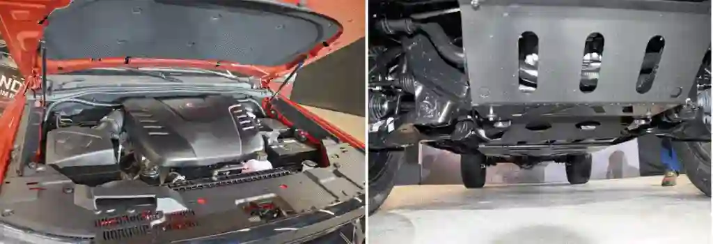 Под огромной крышкой – скромный 4-цилиндровый турбодизель. Защита прикрывает не только двигатель, но и коробку с раздаткой.